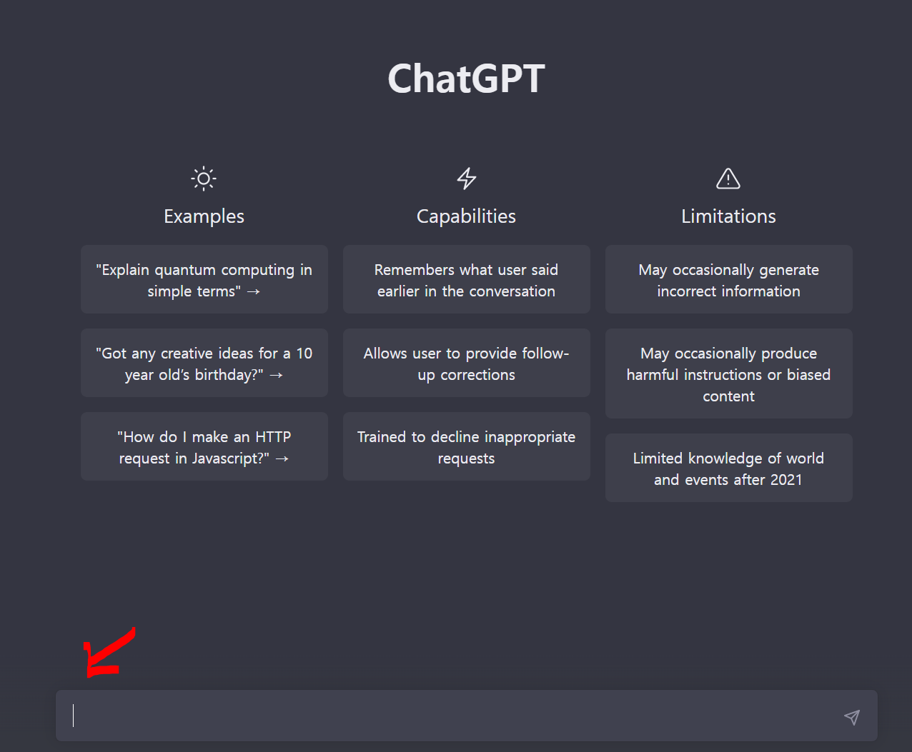들어오시면 위 화면이 보일텐데 빨간화살표 부근에 커서가 보일겁니다. 거기다가 본인이 원하거나 궁금한것을 작성해보시면 됩니다. 한가지 팁을 드리자면 영어로 하면 보다 빠른 답변을 받을수 있습니다. 하지만 영어가 어렵다고 하셔도 문제될게 없습니다. 구글 번역기나 파파고를 사용하시면 되니까요. 이것도 싫으시다면 그냥 한글로 적으셔도 무방합니다. 영어 보다 약간 느릴뿐 답변은 바로 나옵니다.